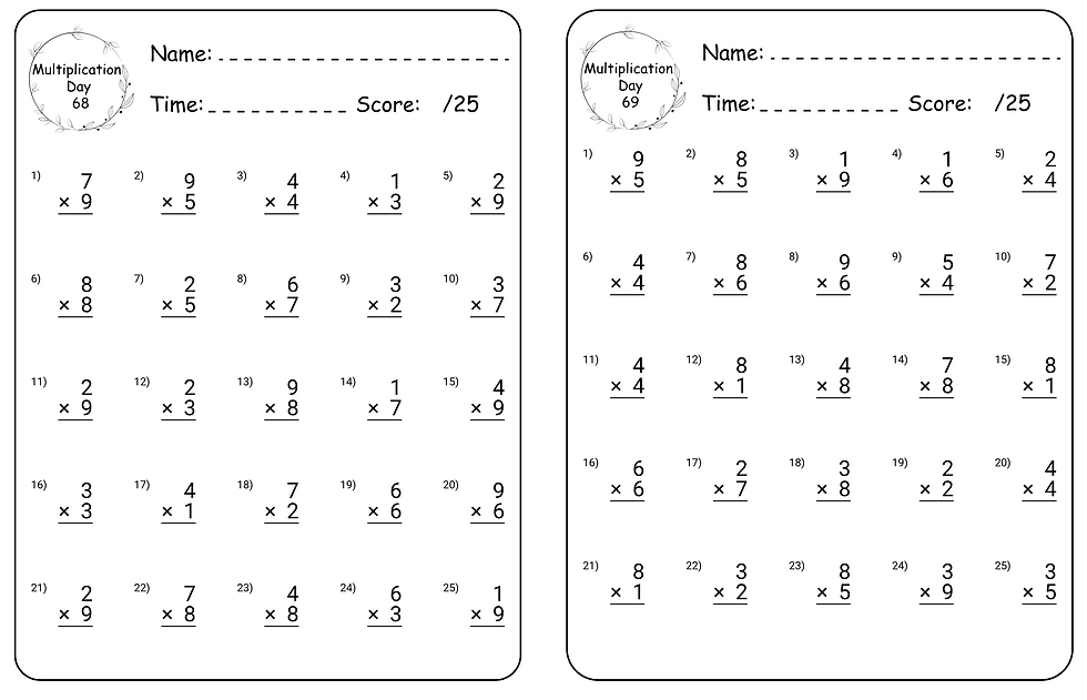 Mental Math- Multiplication 26 Speed Activities